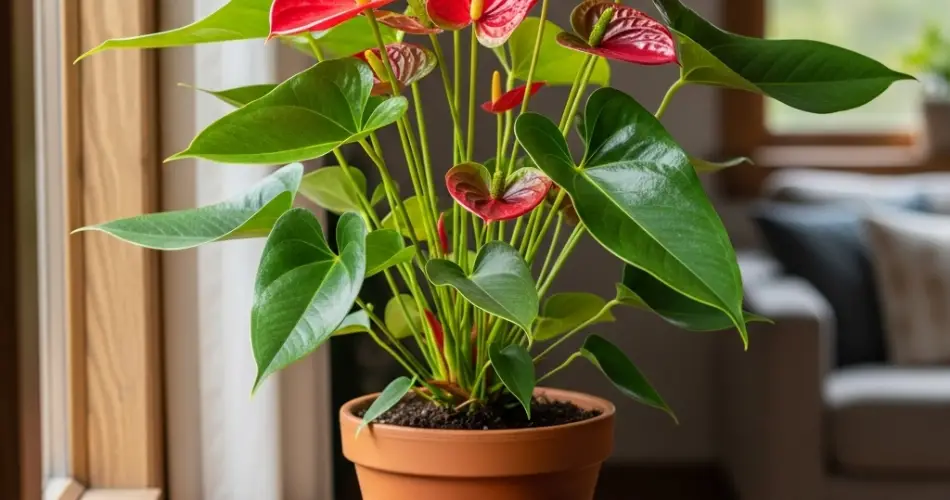 Anthuriums are some of the most striking indoor plants you can grow in containers. With their glossy, heart-shaped leaves and bold, long-lasting blooms in shades of red, pink, white, or purple, these tropical plants can instantly elevate any indoor space. Whether you’re decorating a modern apartment or adding color to your home office, anthuriums make a statement.
