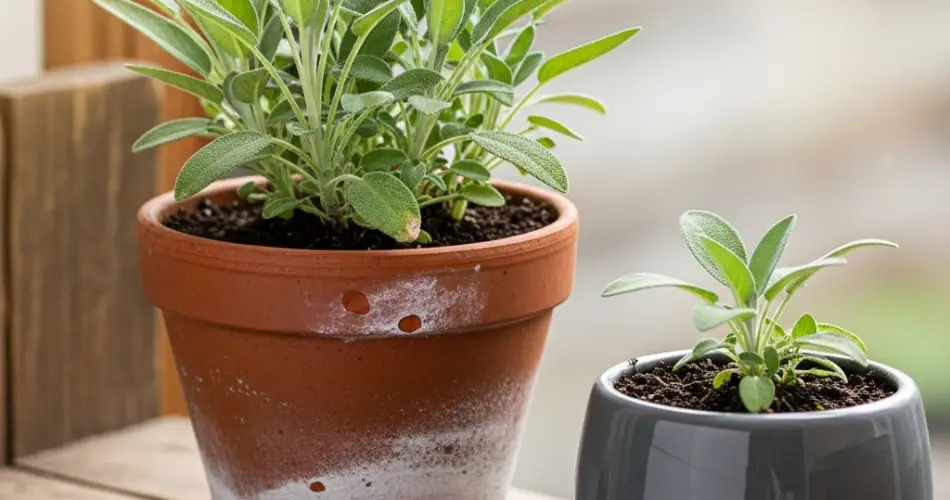 Drainage: Ensure the pot has holes at the base. Sage dislikes sitting in water, and poor drainage often leads to root rot.