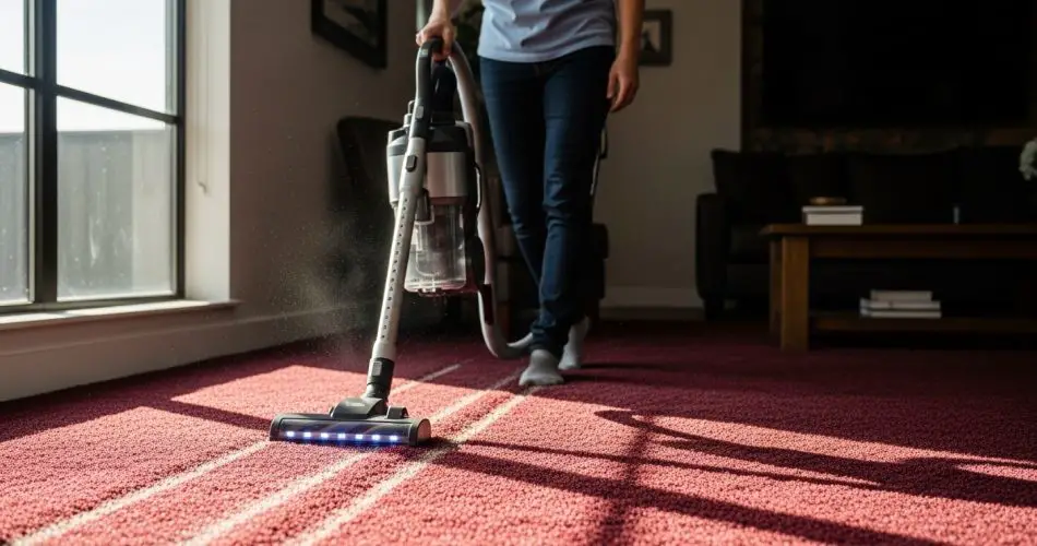 Remove surface dust and pet hair first. The cleaner works best on a rug that’s already free of loose debris. -