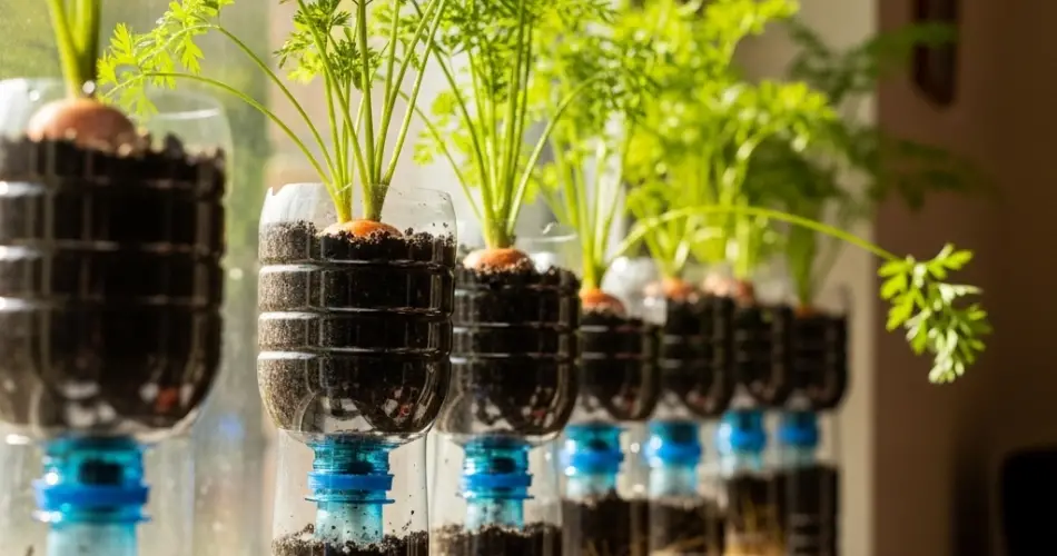 Carrots are often tricky to germinate outdoors because their tiny seeds need consistent moisture and light soil. Sudden heavy rains can wash them away, and uneven watering may prevent them from sprouting evenly. Bottles solve many of these issues. Their enclosed structure retains moisture, prevents seed loss, and creates a warm microclimate that encourages strong germination.