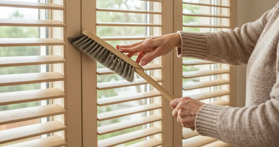 Before deep cleaning, it’s important to get rid of the loose dirt. Start by using a clean, soft cloth or microfiber duster to wipe both the interior and exterior sides of the shutters or blinds. This first step clears away the bulk of the dirt and makes the washing process more effective.