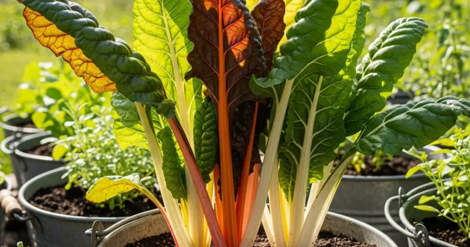 Growing Swiss chard in containers not only provides healthy food but also turns your small garden into a vibrant, edible display of color.