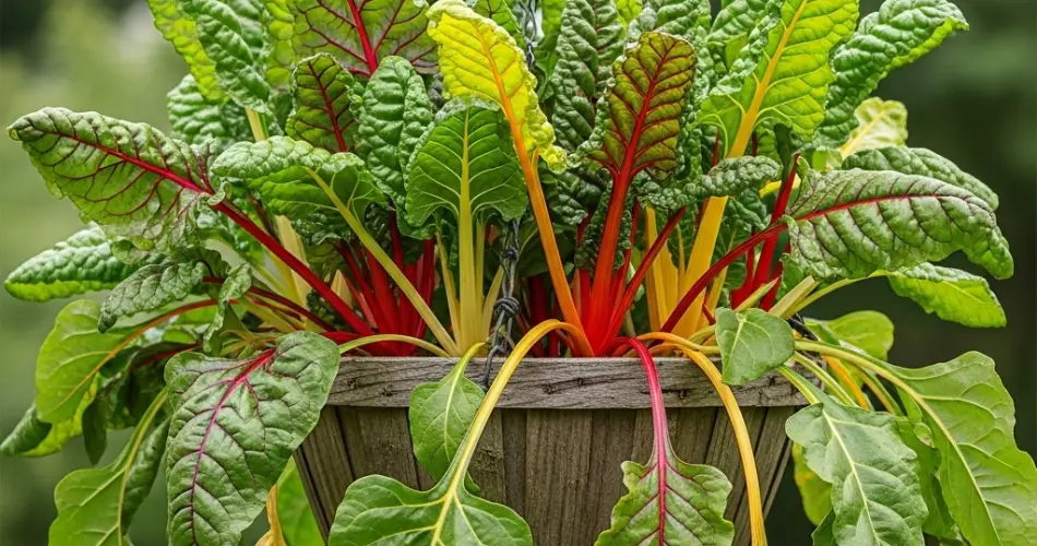 A sturdy, well-drained basket creates the perfect environment for Swiss chard to flourish.