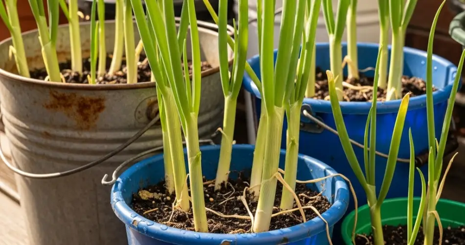 Ensure your buckets have proper drainage holes at the bottom. If you’re repurposing old buckets, drill several holes to prevent waterlogging. Without good drainage, scallion roots may rot.