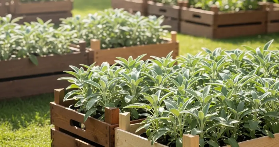 Sage is a low-maintenance, sun-loving perennial that adapts well to container gardening. Using crates has several advantages: