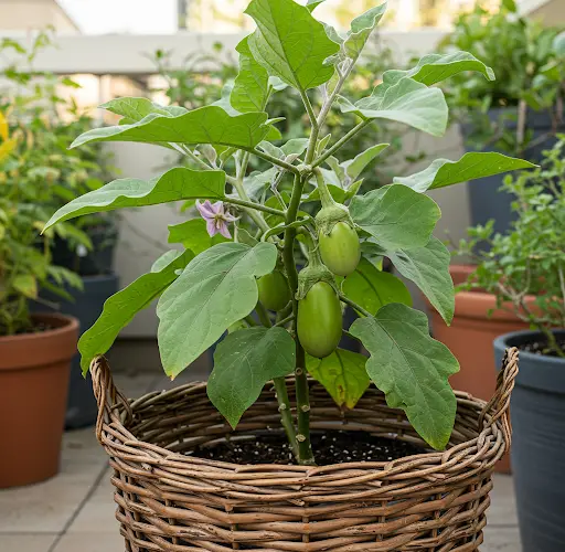 With the right care and setup, a few recycled baskets on your terrace can turn into a mini vegetable haven—yielding delicious eggplants for months.