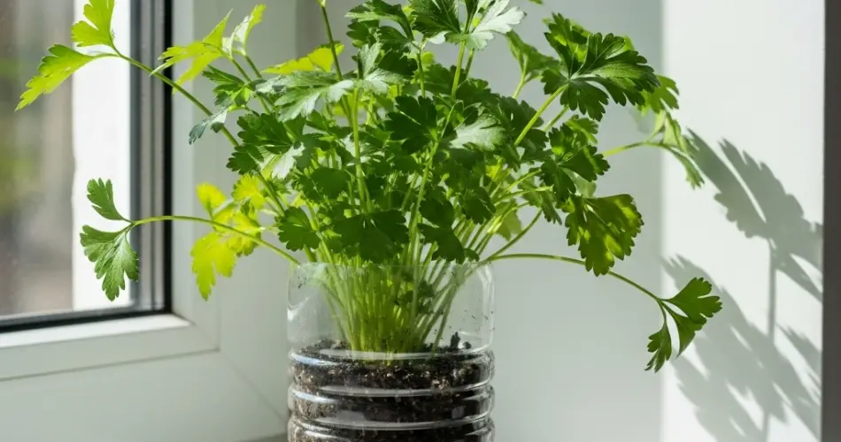 Plastic bottles are an excellent alternative to traditional pots. They’re lightweight, easy to customize, and allow for vertical or horizontal gardening setups. Growing parsley in bottles also helps reduce plastic waste and gives you better control over watering, drainage, and sunlight exposure.