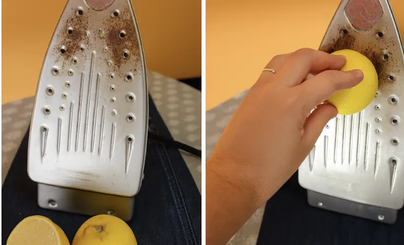 - Cut a lemon in half and rub it gently over the stained areas of the iron.