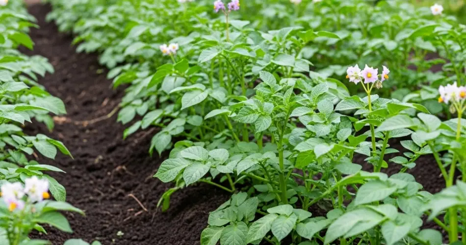 As your potato plants grow, they’ll send up green shoots. When these shoots are about 6–8 inches tall, begin a process called hilling. This involves gently mounding soil up around the base of the plant, burying the lower stems. Hilling protects developing tubers from sunlight (which turns them green and toxic) and encourages more potatoes to form along the stem.