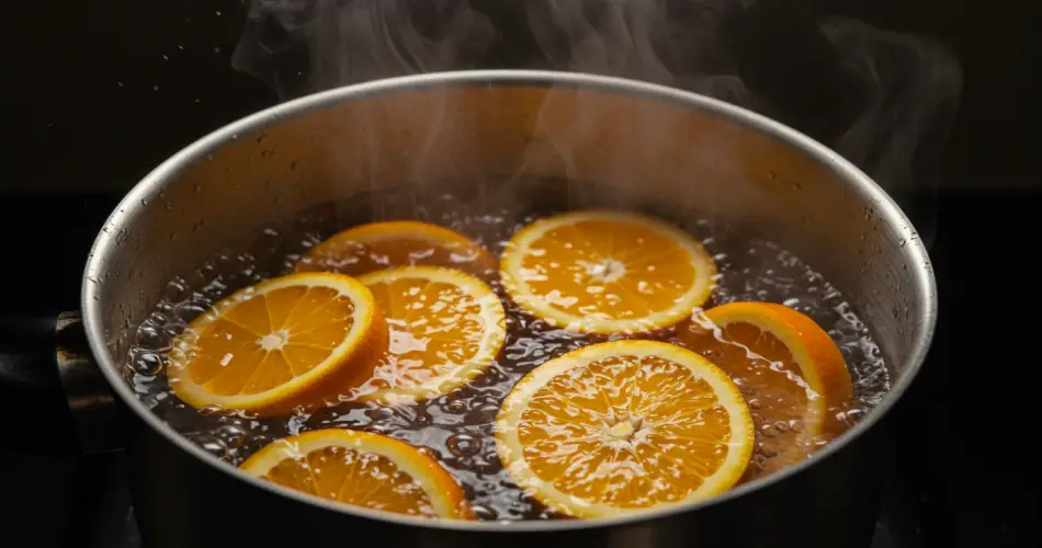 To use citrus for odor control, start by cutting a lemon or an orange in half. Squeeze the juice into a small pot of water, then slice the remaining halves and add them to the pot. Heat the mixture on the stove until it comes to a gentle boil, then reduce the heat and allow it to simmer. The natural oils released from the fruit will fill your kitchen with a refreshing scent. Once the aroma spreads, you can turn off the stove and let the fragrance linger.