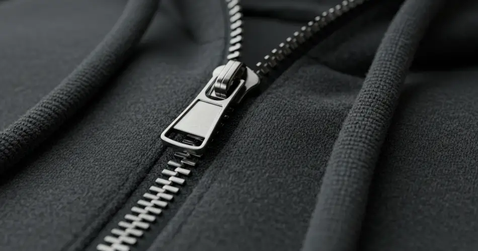 At the top of the hoodie, you’ll likely have a bit of zipper tape extending past the neckline. Trim it down to about 2 cm above the fabric edge. Remove the excess zipper teeth with pliers and fold the tape inside. Sew it down securely so it doesn’t scratch your skin.
