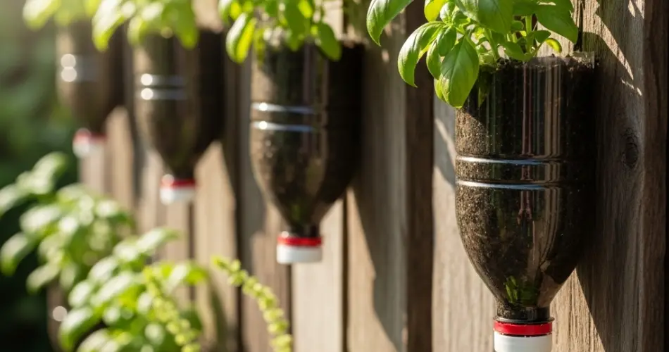 A sustainable bottle-to-leaf garden not only provides year-round fresh basil but also transforms walls or fences into vibrant, living green displays, combining practicality with beauty in urban gardening.