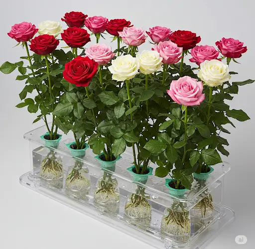 Faster Rooting: Without the limitations of soil, roses in hydroponic systems can root faster.