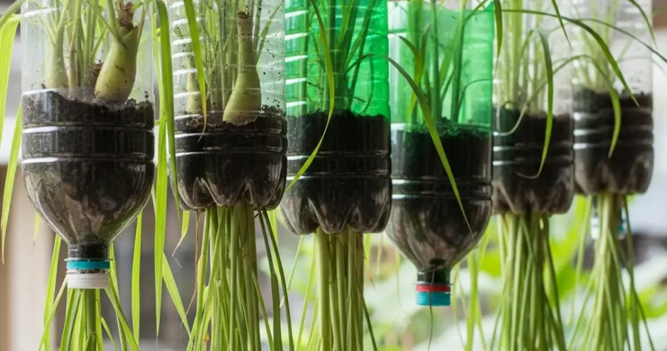 For a vertical lemongrass garden, 1–2-liter plastic bottles work best. Wash each bottle thoroughly to remove any residues. Cut a wide opening on the side or top of the bottle to accommodate the plant and provide access for watering and harvesting.