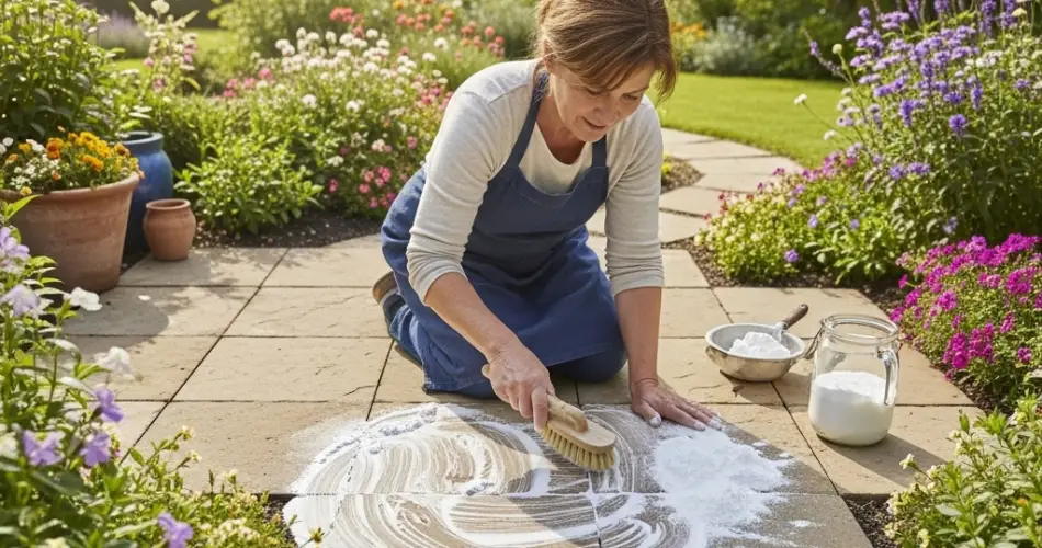 Shaded garden paths, decks, and patios often accumulate moss, mildew, or algae that can become slippery and unsightly. Baking soda can help clean these areas naturally.