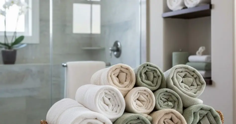 Another Japanese-inspired technique involves rolling towels rather than folding them. This method is particularly useful if you want to create a visually appealing storage solution or fit towels into a small space. The key is to secure the roll so it doesn’t unravel.