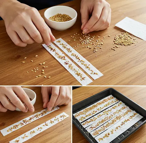 - Fold the Paper: Gently fold the toilet paper over the seeds, covering them. If using glue, place a small dab at each marked seed position before folding to secure them in place.