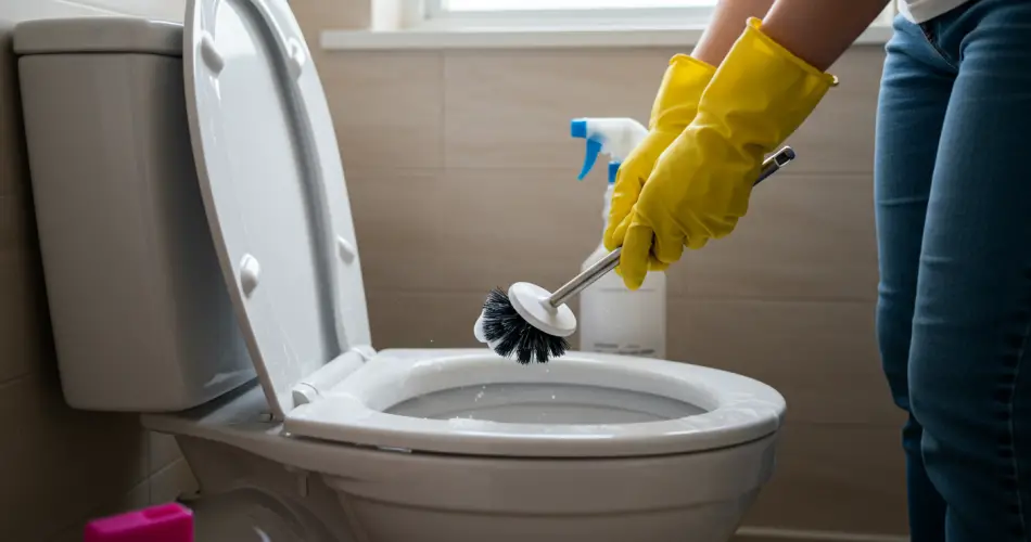 Scrub the Surfaces – Use a sponge or toilet brush to scrub all treated areas. The baking soda in the mixture will help loosen even the most stubborn deposits, while the detergent ensures a thorough clean.