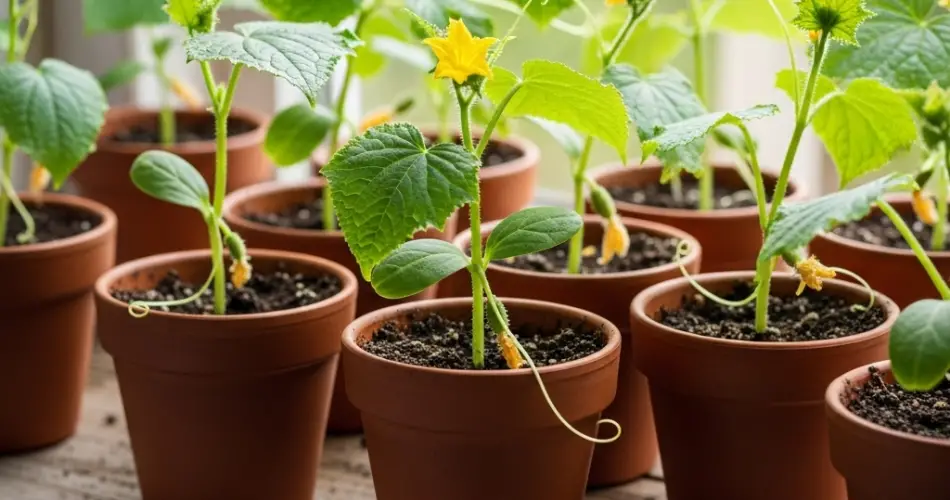 Plant cucumber seeds about ½ inch deep, or transplant young seedlings when they have at least two true leaves. Space them 6–8 inches apart if you’re planting more than one in a larger pot.