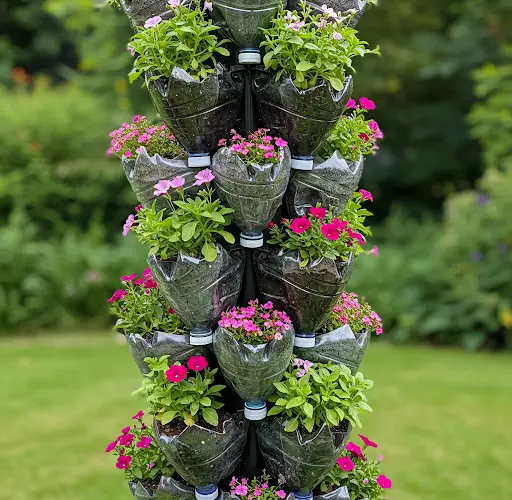 Step-by-Step Guide to Creating a Vertical Flower Tower with Plastic Bottles