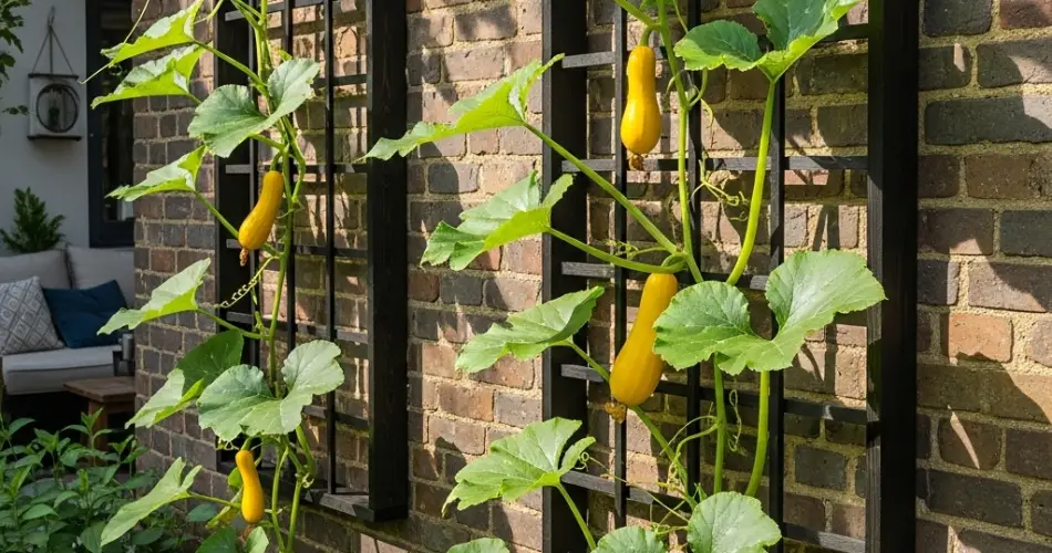Harvesting squash from a vertical trellis is easier and more efficient. Fruits are visible, accessible, and less prone to bruising or rot. Pick squash regularly at the desired size to encourage continuous production throughout the growing season. Vertical support ensures even the heaviest fruits are held securely, preventing damage to the plant or fruit during harvest.